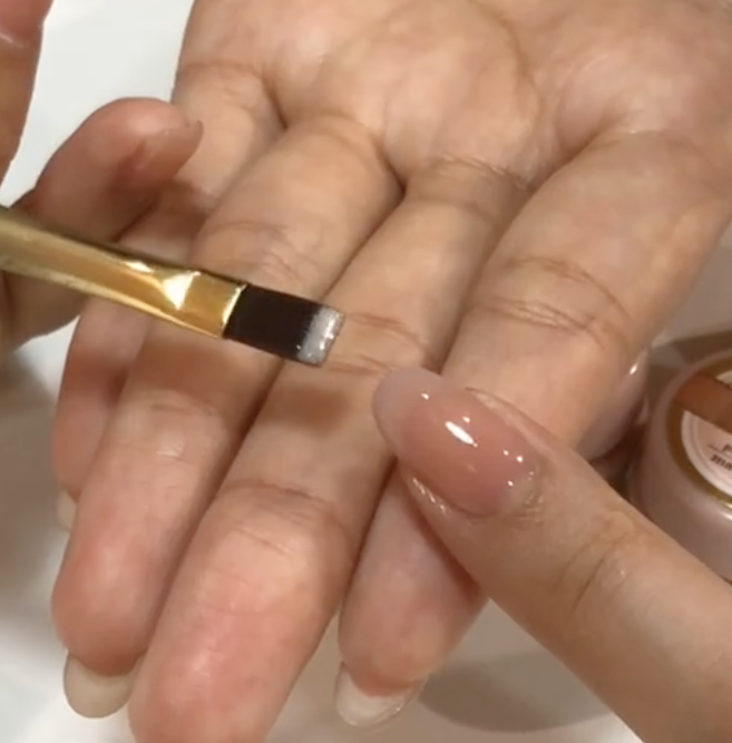 先端に塗布し、サイドまで馴染ませ、軽く馴染ませます.