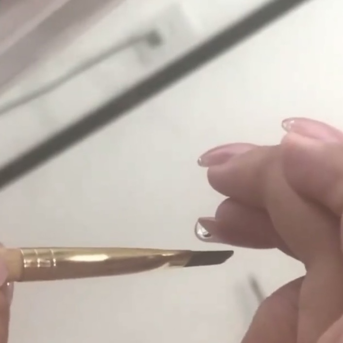 ・指を裏返しにして余分なジェルを除去!これは指を裏返す際に少しだけ指を手前側に斜めにするとやりやすい。マオ筆の角でジェルの表面だけを優しく触って余分なジェルだけ取り除いて下さい(硬化時間:UV 2分以上 LED1分)