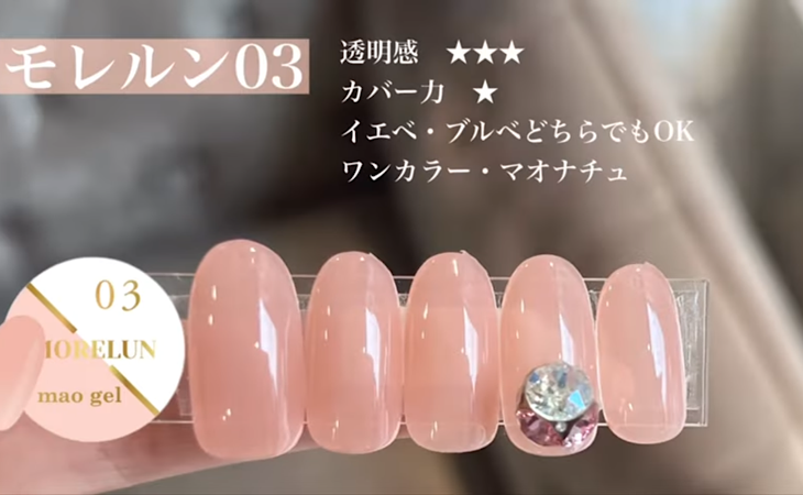 透明感溢れるナチュラルカラーで、ひと塗りするとお爪のトーンをふんわりナチュラルにカバーできる優れものです。