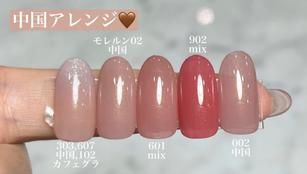 805と比較するとCHUGOKUの方がベージュ味のあるヌーディーカラー.