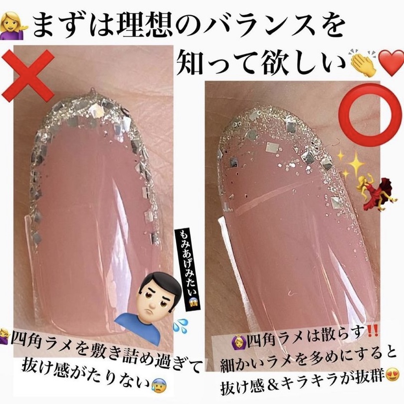 四角ラメは敷き詰めすぎず、散らして抜け感を!