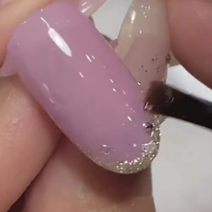 マオラメを少し取り、仕込みのラメジェルの内側にも散らすように先端にのせていきます.