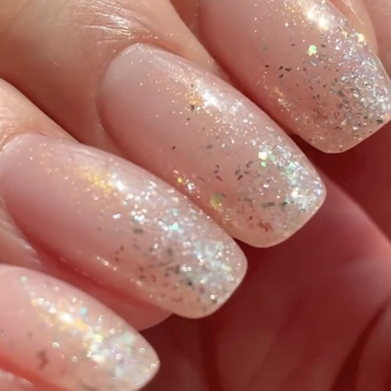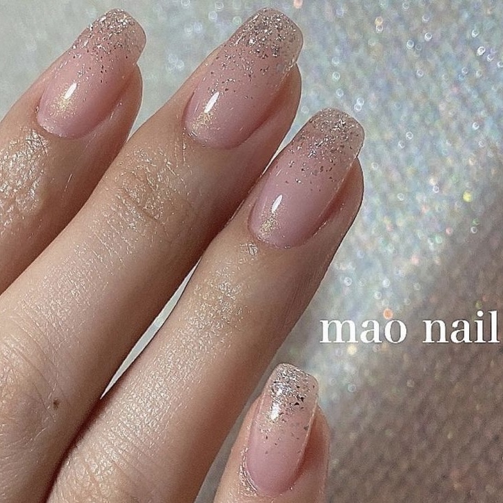 先端だけが濃く、自然にぼかされていて、爪に星が降っているようなイメージで♡