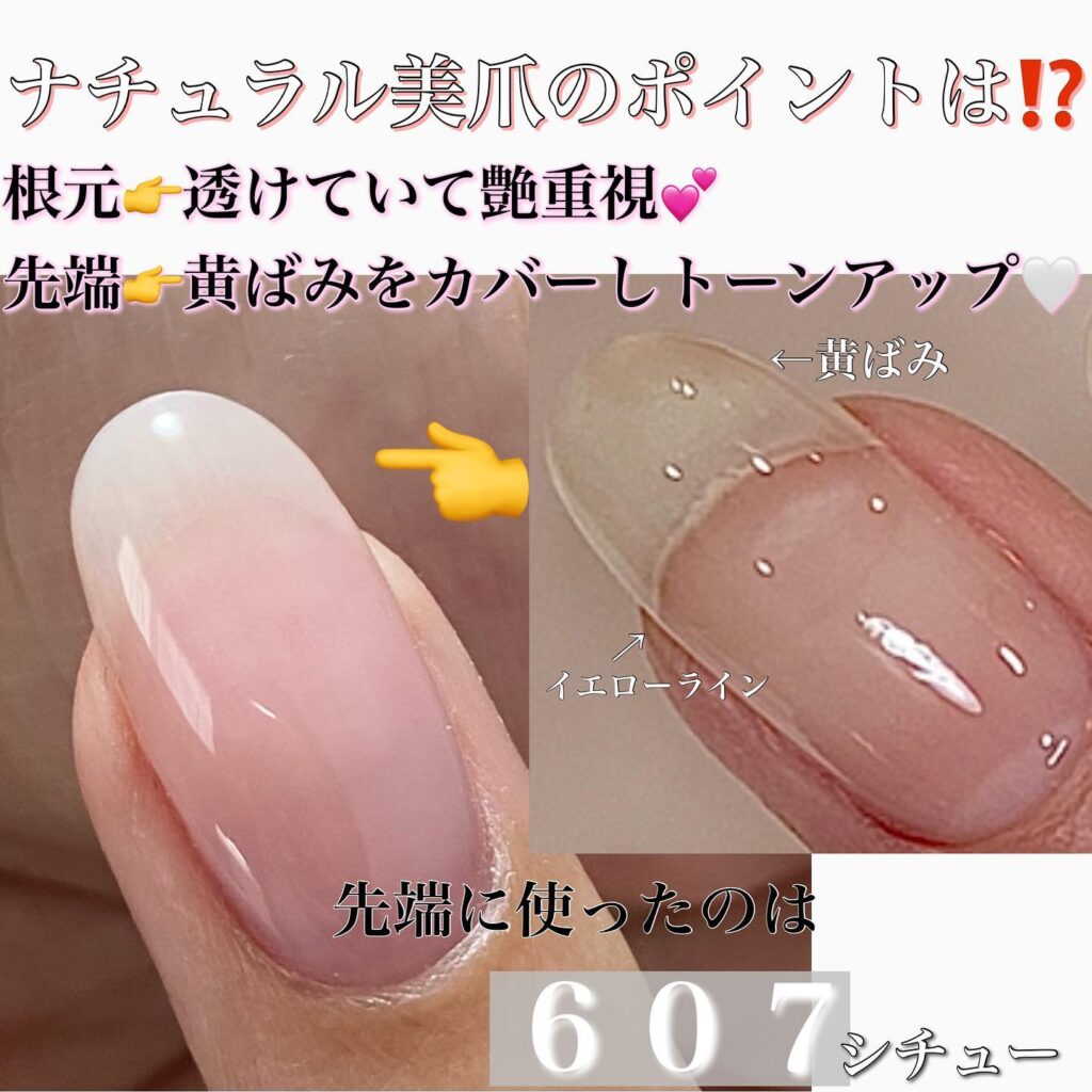 透け感を残すから、元々美爪の様に、、ナチュラル艶重視の方は、是非参考にしてくださいね♩