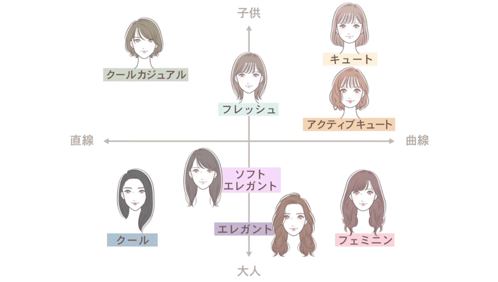 顔タイプは、8つの分類に分けることができますが、今回はわかりやすく、大人顔•子ども顔で説明しています.