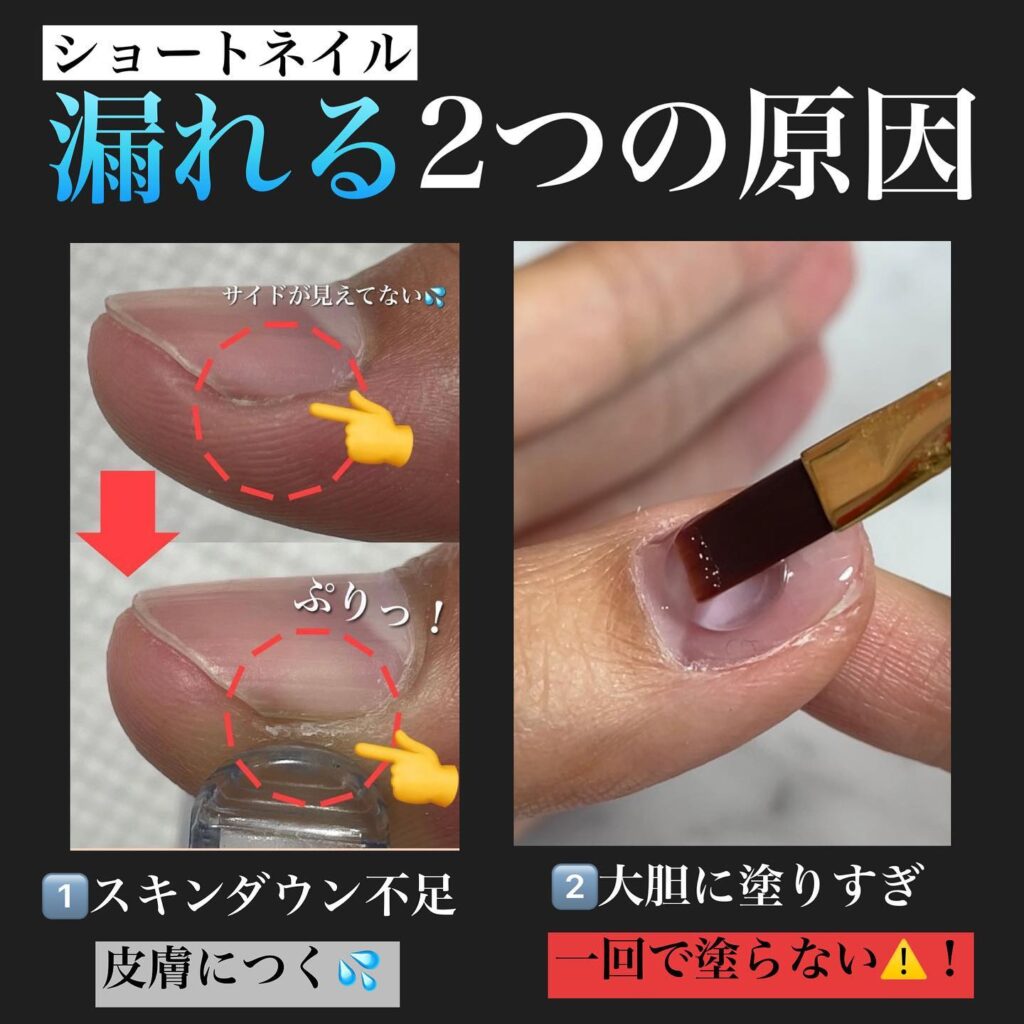 今回は、ショートネイルの根本やサイドの漏れの解決方法をご紹介します^^