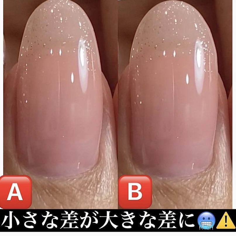 AとBは同じ方の爪ですが、Bの方がぼってりして見えませんか?