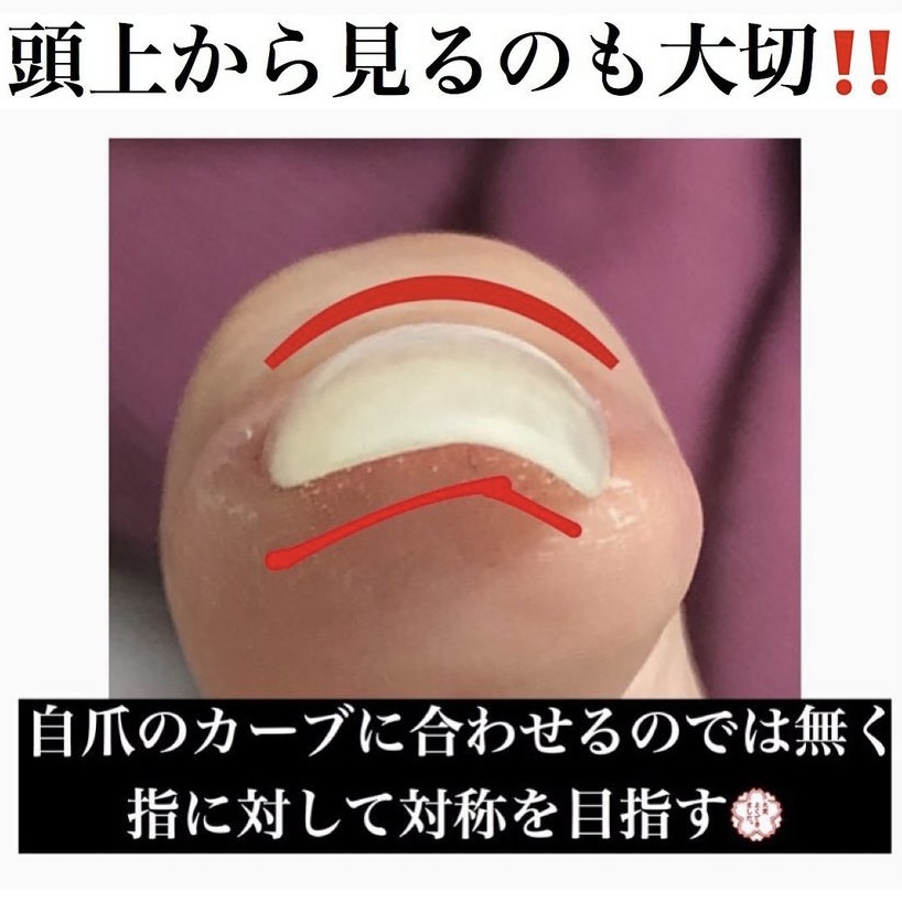 自爪のカーブに合わせるのでなく、指に対して対称になるように.