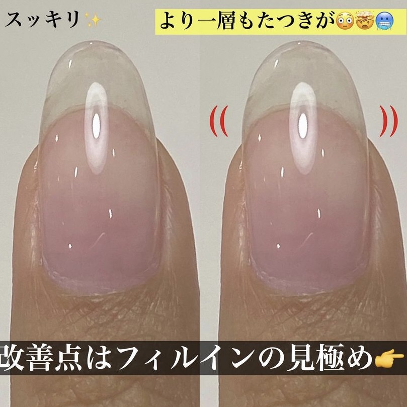 さほど変わりなく見える自爪かもしれませんが、ベーストップと重ねると違いは歴然!