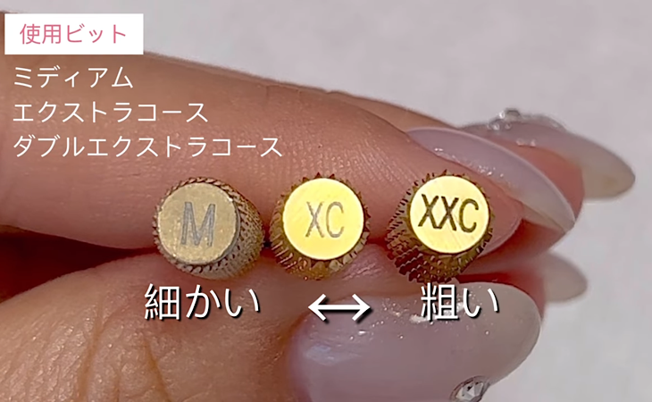 ※サロンではエクストラコースからダブルエクストラコースくらいのビットを使用しています