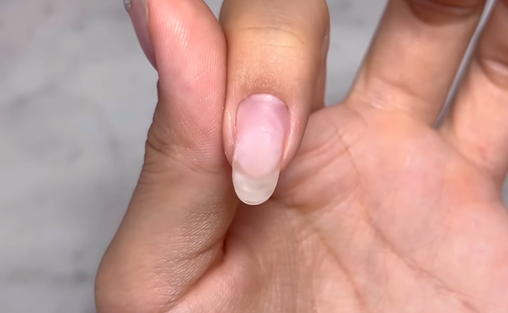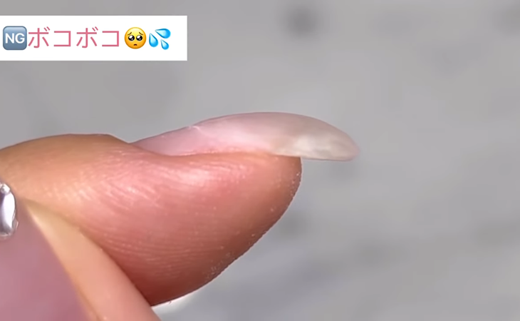 マオジェルのベースジェル【ピタコ】でフォルム作りをしていると中央が高くなっているので、中央から削り始めてください.その次に左側、右側と順番に同じ方向に向かって削ります.