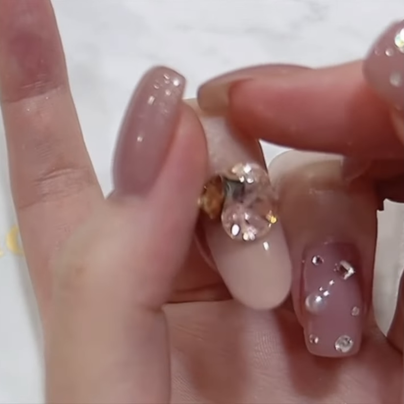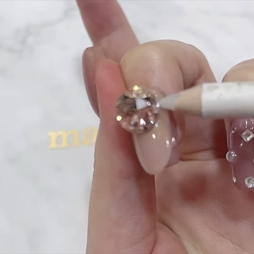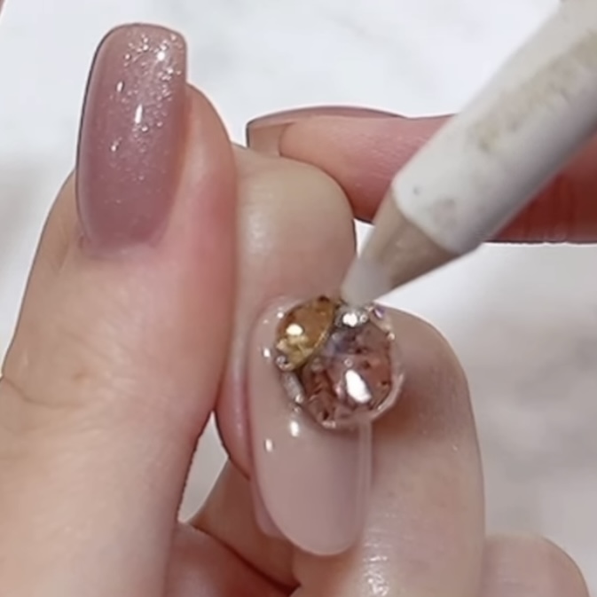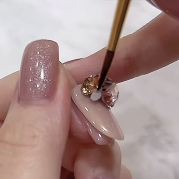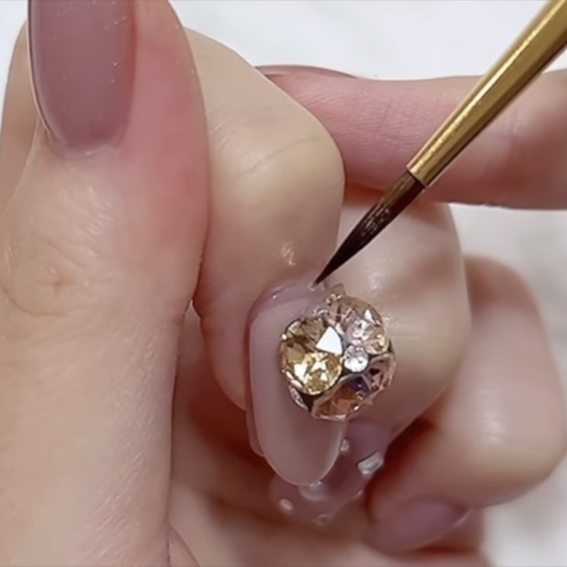 まず適量のミクスチャーを爪にのせ、ss39のストーンを右側に傾けてつけていきます.