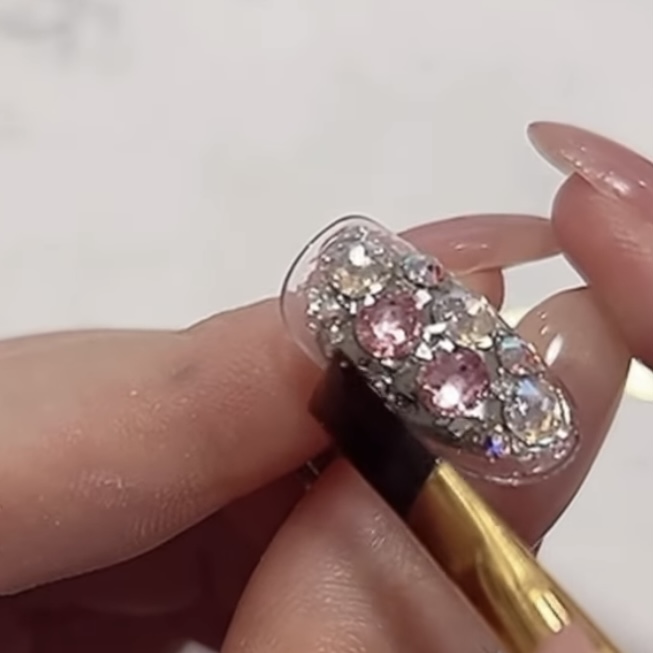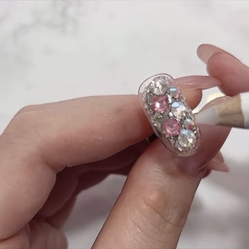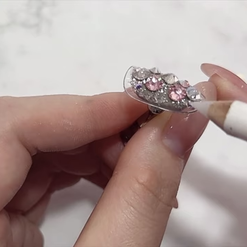 筆に適量のヌレコを取り、ストーンの周りに塗布していきます.