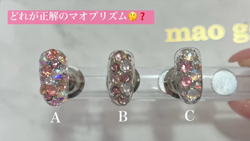 マオプリズムとは、マオネイル考案のストーンの埋め尽くしネイルのことです♩