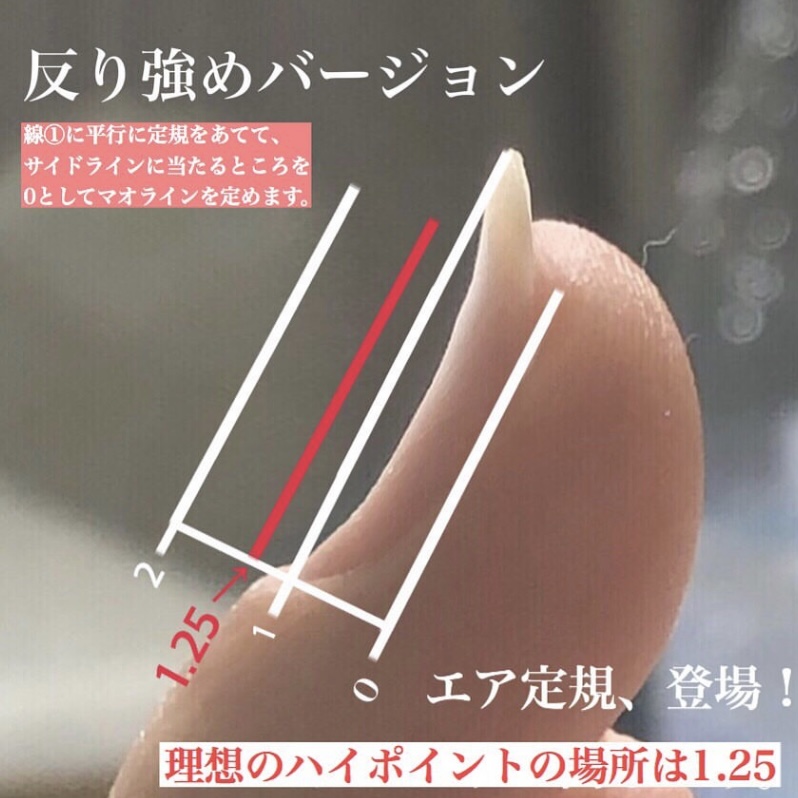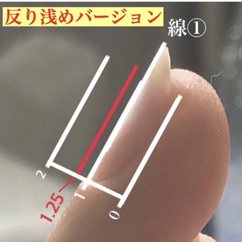 反り爪さんは元々0と1の距離が長いため、ノーマル爪さんと同じ1.5目盛にマ オラインをもってきてしまうと逆に盛り爪になってしまいます