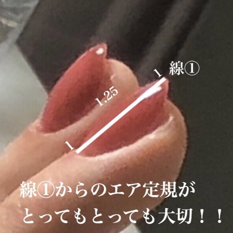 実際のサロンワークでお客様のお爪に線は引けないのでエアーで想像してやってみてくださいね