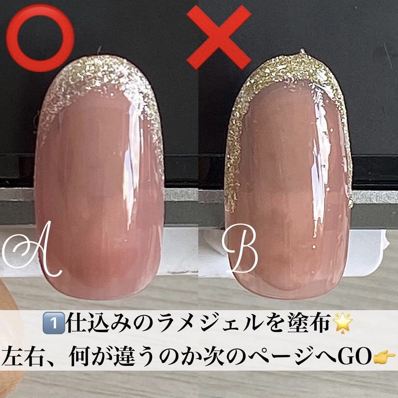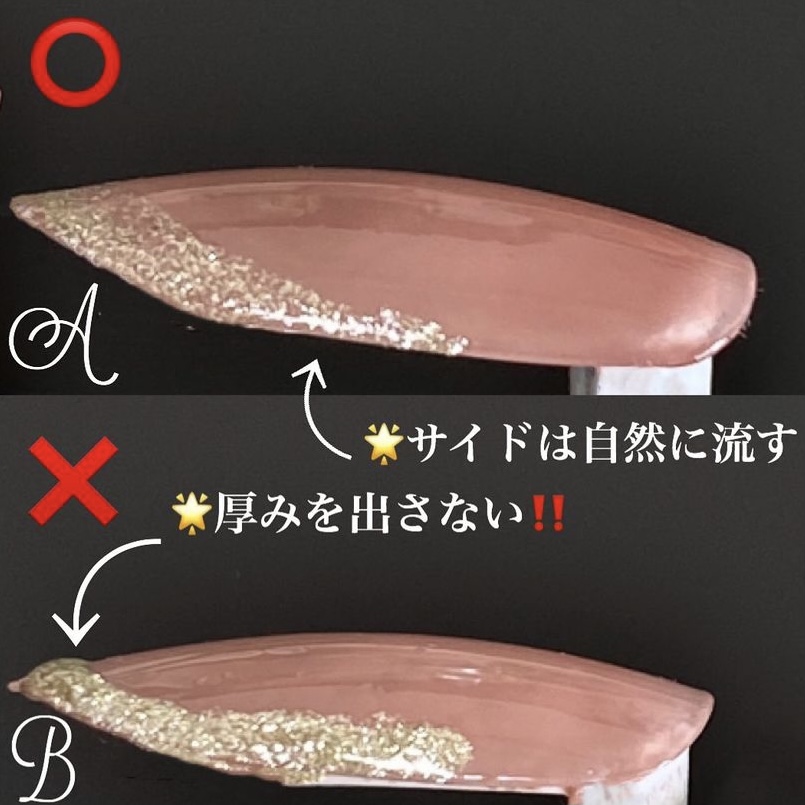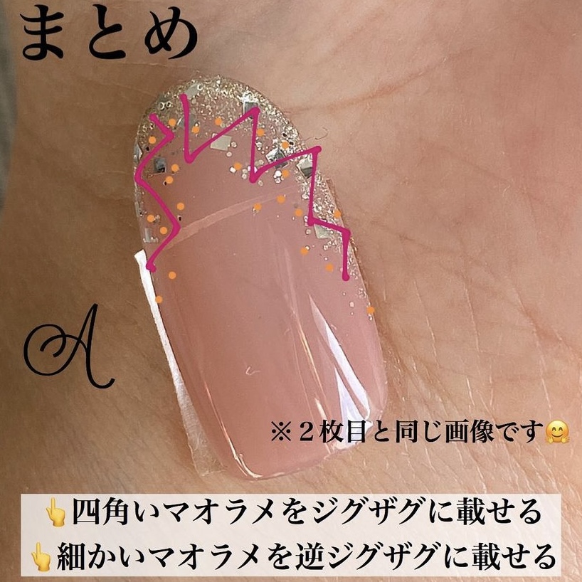 ③細かいラメを取り四角いマオラメとの境目に散らす