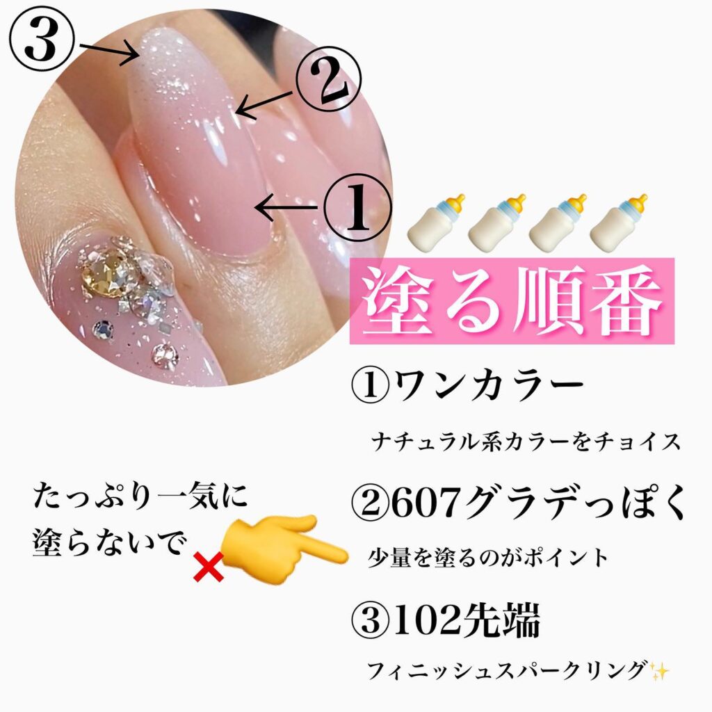 ミルグラ 2022-06-202022-06-19 誰でも簡単に出来ちゃうミルグラのHow toをご紹介します^^♩ 1.塗る順番 ①ワンカラー ナチュラルカラーを選んでください②607グラデっぽく たっぷり一気に塗らないで、少量を何回も塗るのがポイント③102先端 フィニッシュスパークリング 3.最後に ミルグラは洋服やバック、アクセの邪魔にならず、トータルコーディネートにぴったりです♩お洒落さんにぜひ♡ Instagramでも更新中 この投稿をInstagramで見る 綺麗になるお手伝いさせてください❤(@maonail)がシェアした投稿