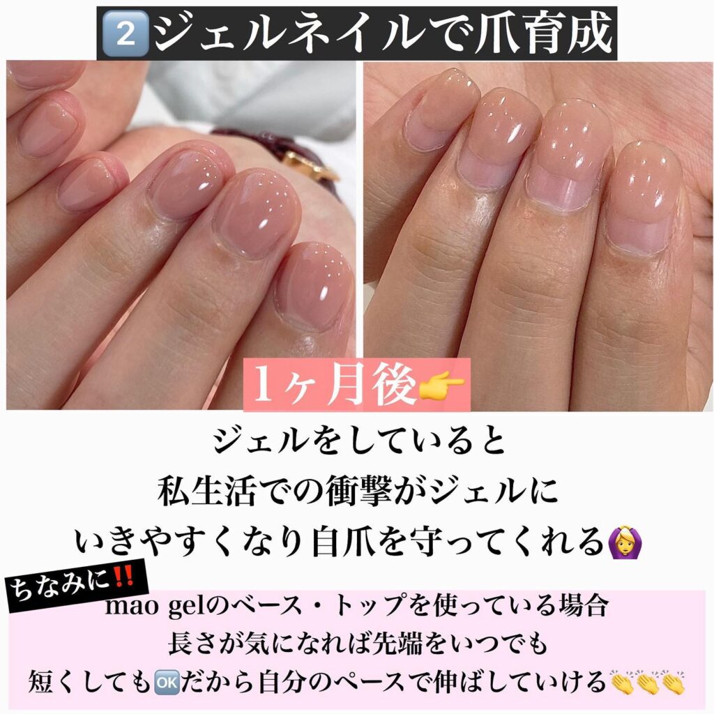 また、mao gelのベース・トップを使っている場合、長さが気になれば先端を短くしてもOK!なので、自分のペースで伸ばすことができます♩