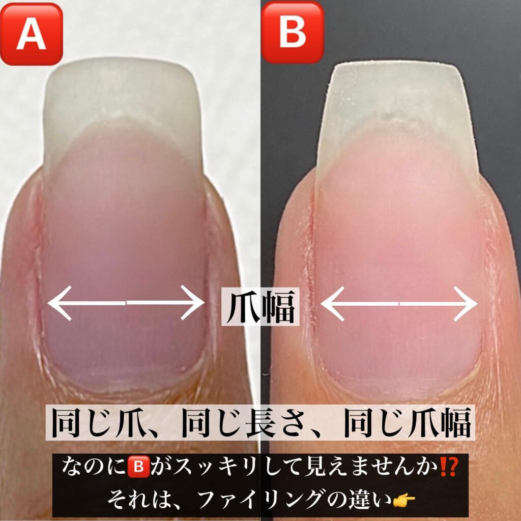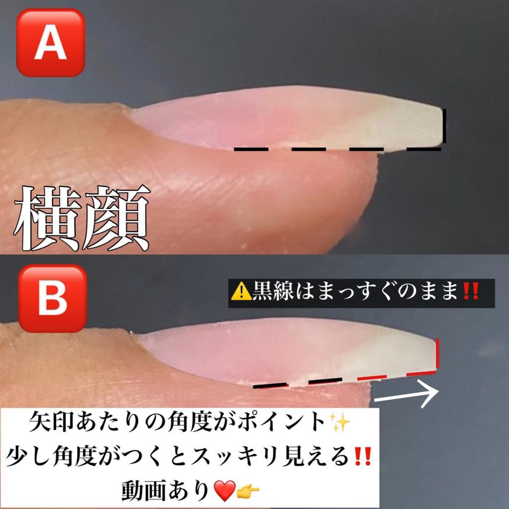Bは途中から爪幅の角度と揃えながら角度をつけている