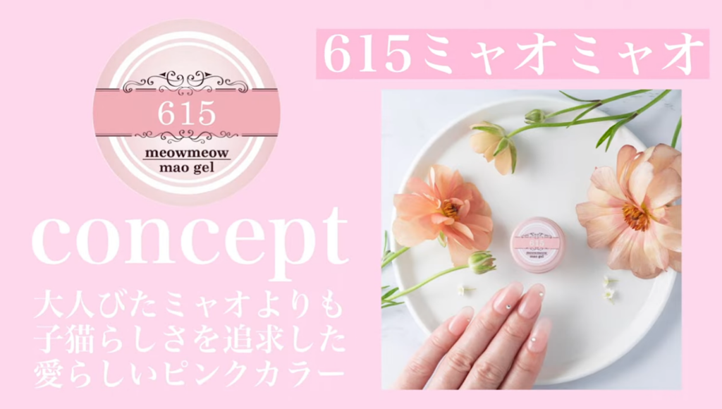 他のカラーと比べると、615はふんわりキュート感と透明感のあるコーラルピンクです.