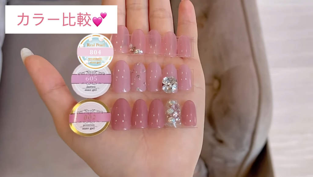 他の色と比べると、804は紫味を感じる透明感あるナチュラルなピンクカラーです.