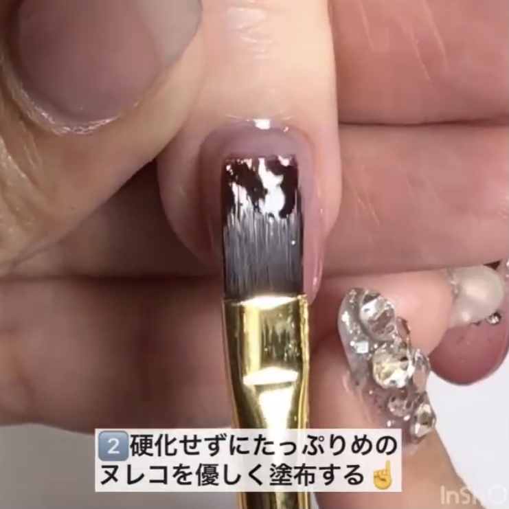 Step2のジェルがセルフレベリングしやすくするために、ジェルを爪全体に塗ります。