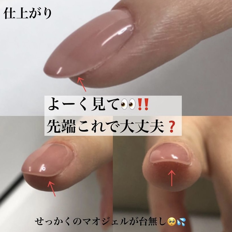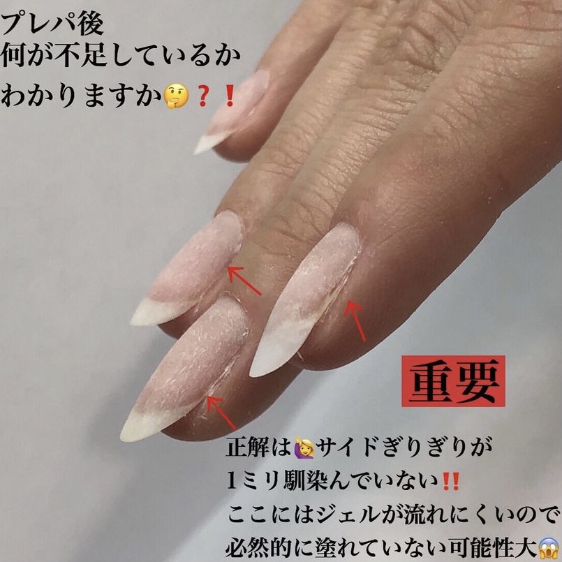 ベースジェル、トップジェルでサイドまで塗布する事!!