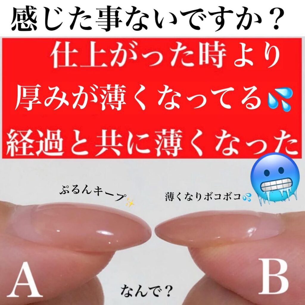 ジェルは日々の生活(手洗いや擦れ等)で薄くなっていきます。(カバンの角がすれて使用感がでるように!)仕上がりは綺麗だったけど、経過と共に薄くボコボコになってきた経験はありません、、?