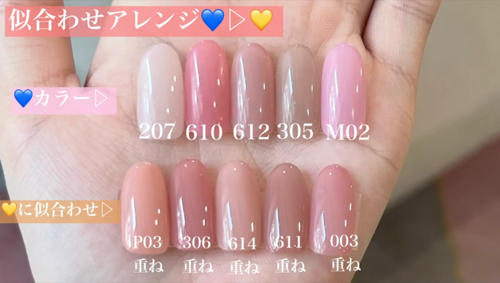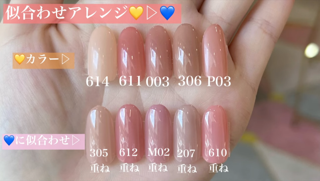 右:ブルベ夏▶︎306ブロージュにミスバタ02を重ね塗り