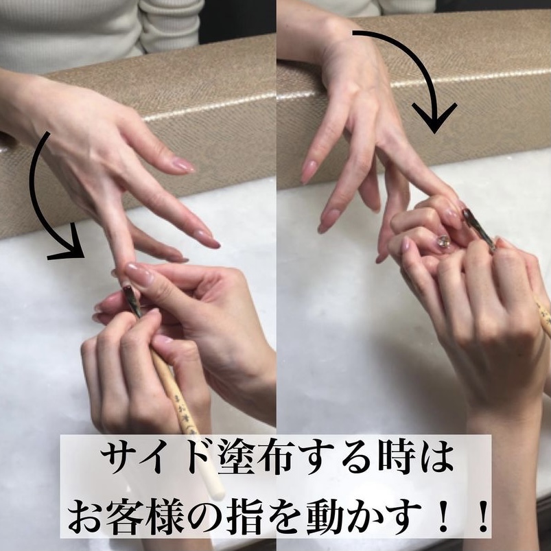 プロの姿勢 手の動かし方 2022-04-052022-03-30 本日はプロの姿勢&肌の動かし方&スキンダウン方法についてです! 大切なポイント プロの姿勢姿勢は真正面からではない! 支えの手は机にあて、安定させる事が大切! 塗布の際、筆は先端で止めずに引き切る!慣れるまではゆっくり。練習あるのみ! 筆を動かす際自然と支えている手も動かしている!特にサイドはしっかり動かす練習をしておくと自然と上手くなります! 最後に 支え方は人によりけりなので、今回は一つのやり方として参考にしてください♩ Instagramで動画もチェックしてみてください♡ Instagramでも更新中 この投稿をInstagramで見る 綺麗になるお手伝いさせてください❤(@maonail)がシェアした投稿