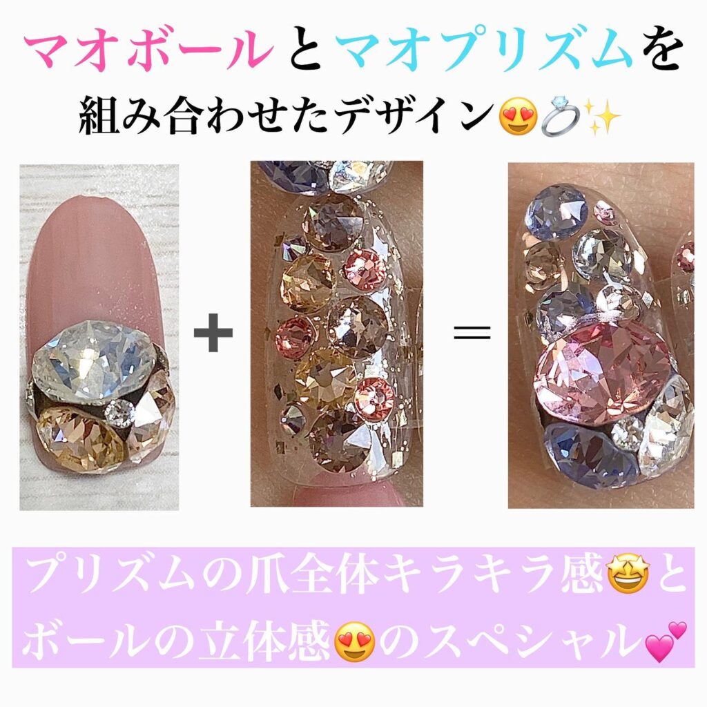 「マオプリズム」がお爪全体を埋め尽くす、だけどスッキリ見えるキラキラデザインと「マオボール」の立体的で目にいく存在感のコラボデザインがスペシャルに可愛いです♡