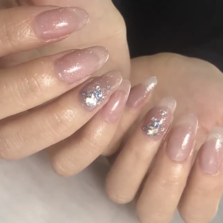 派手なネイルができない方でもさりげなく中に埋まったラメ感を楽しめます。