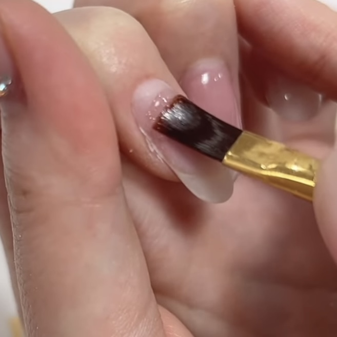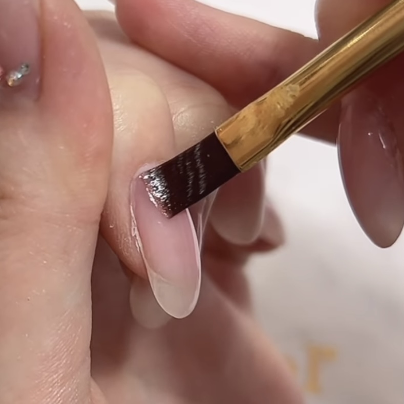 サイドのジェルは筆の端を使って真っ直ぐ引いてください.