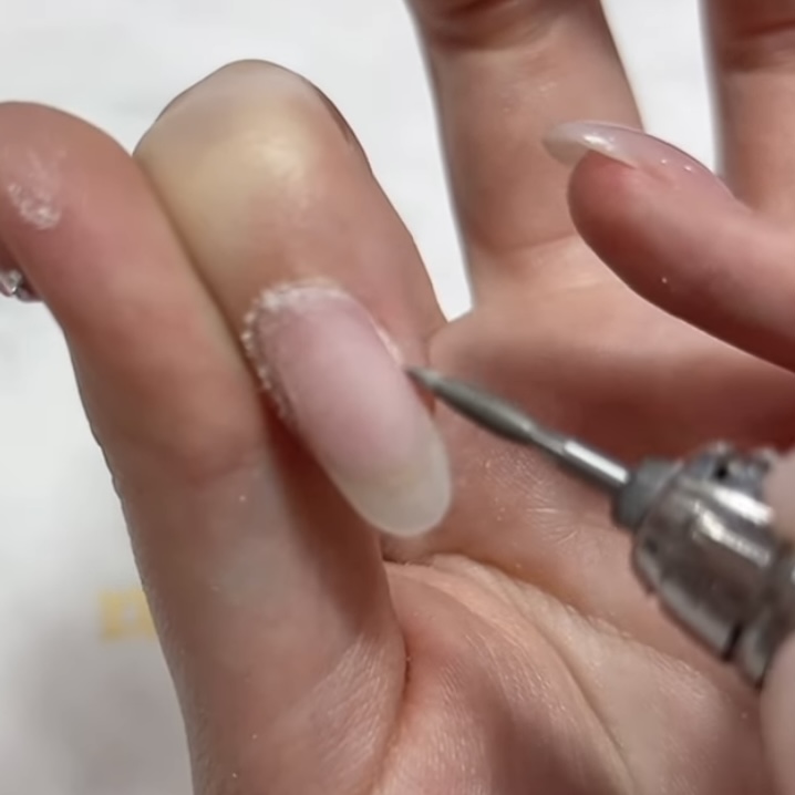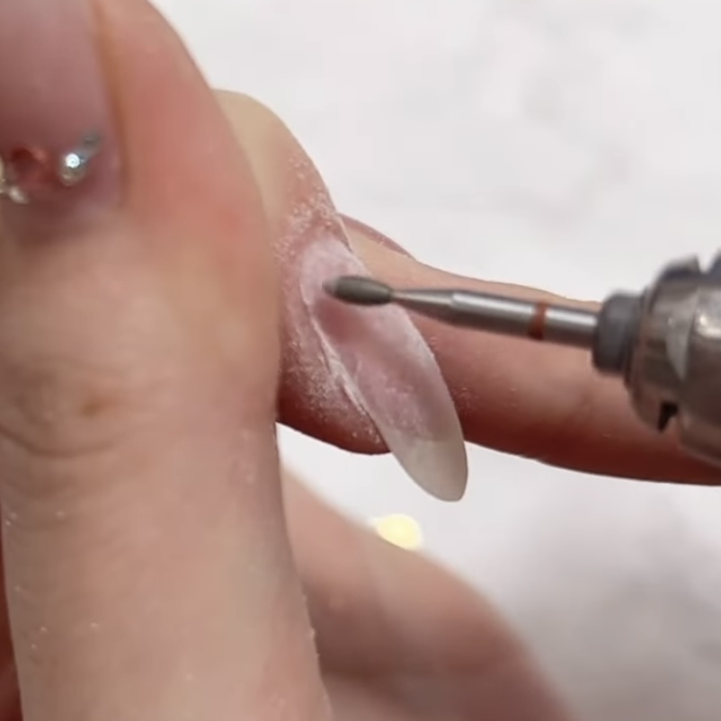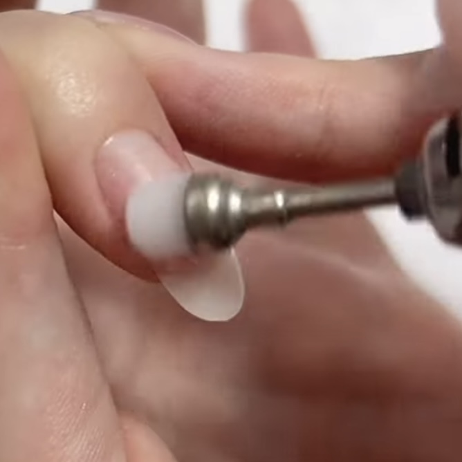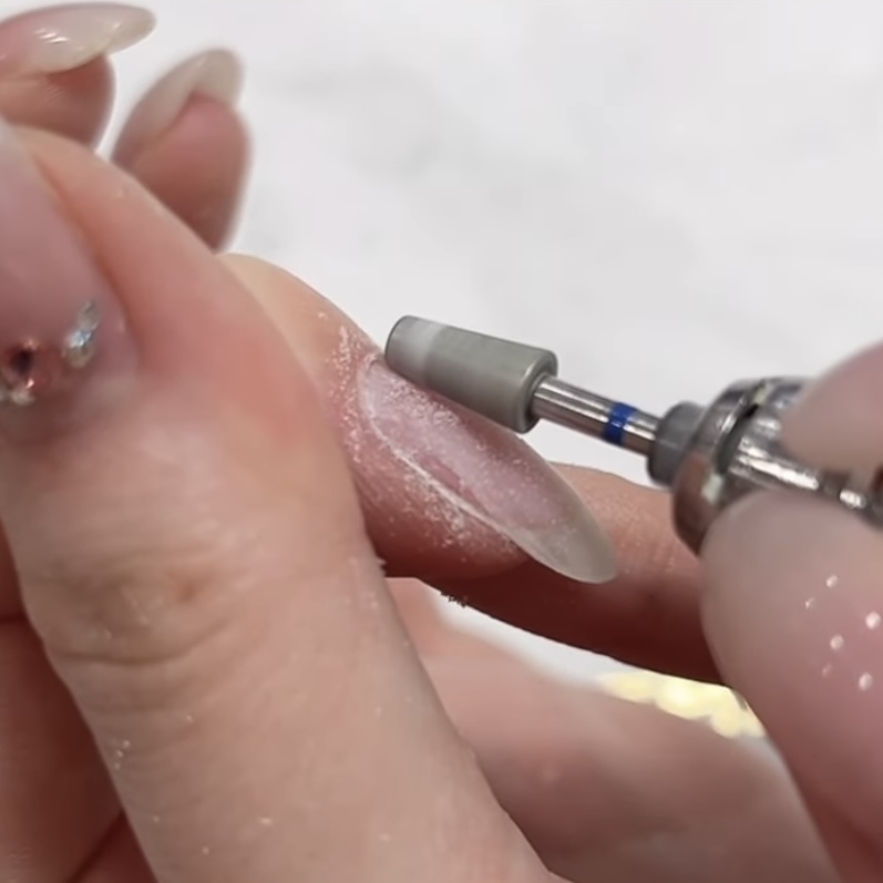 甘皮が張り付いているような場合は、細めのビットでルースキューティクルの除去をおこなっていきます.