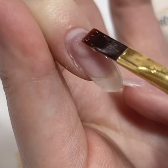 爪を裏返して余分なジェルを拭い、フォルム形成をおこないます.