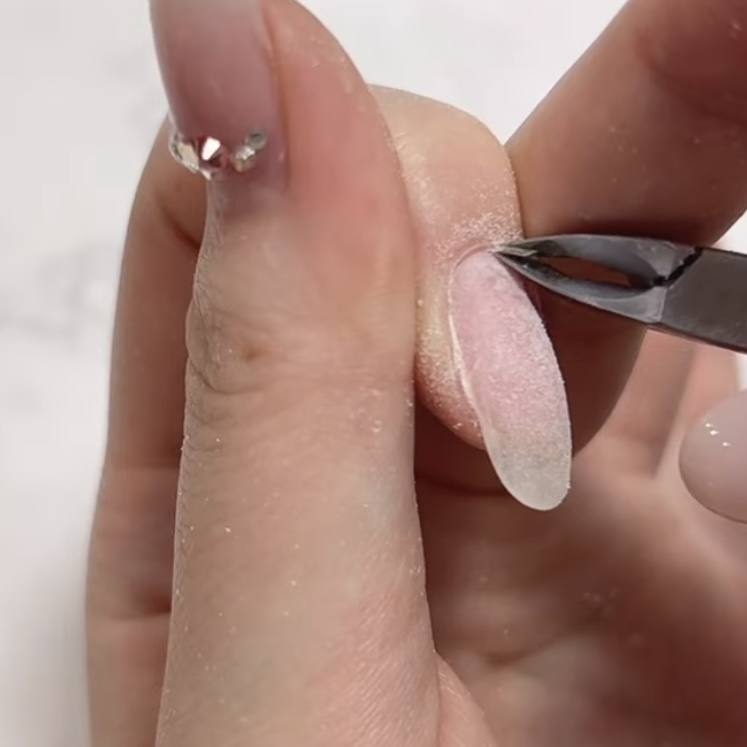 フィルインしている方は伸びてきた自爪とサイドのみサンディングします.
