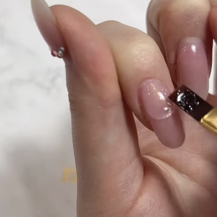 キューティクル側にたっぷりとジェルを置き、手前に誘導していきます.