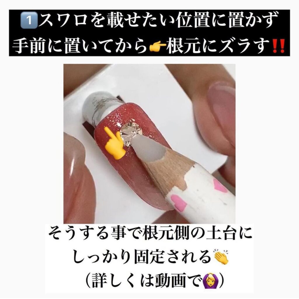 「スワロを載せたい位置に置かず、手元に置いてからズラす」