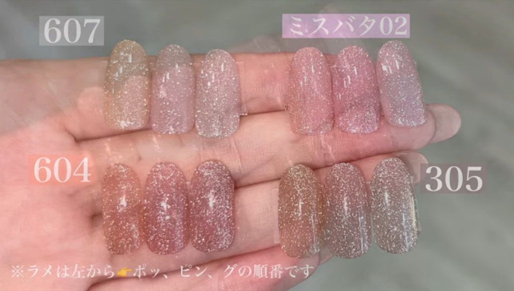 大人っぽいヌーディーなグレージュカラーのラメでベージュ系やくすみ系のカラーが好きな方にオススメ!