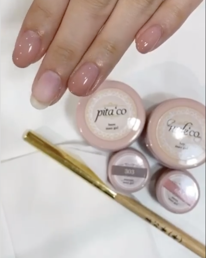 一回クルッと塗ったら、根元側から先端に優しく引き切るように塗って、303一度塗り完成!
